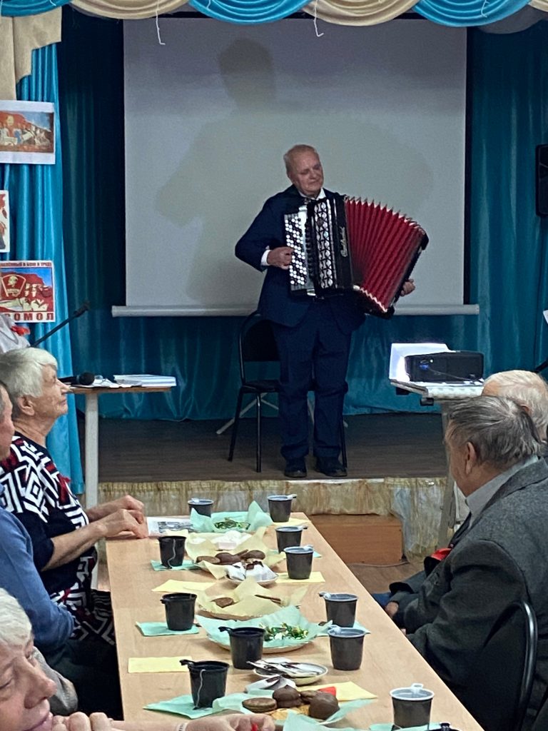 Кульминацией вечера стало выступление С.К. Гаранина, заслуженного работника культуры РФ, солиста Губернского оркестра, комсомольца, коммуниста. Все присутствующие под его аккомпанемент вспомнили песни комсомольской юности.