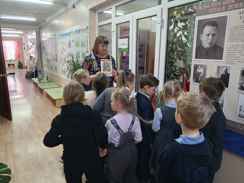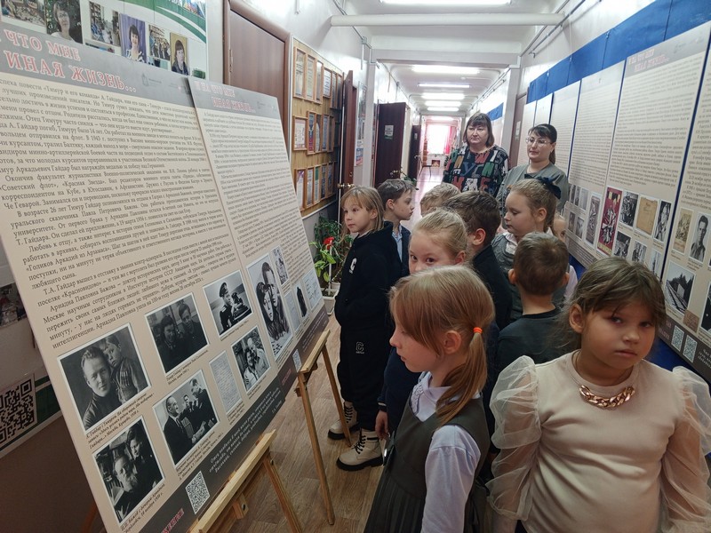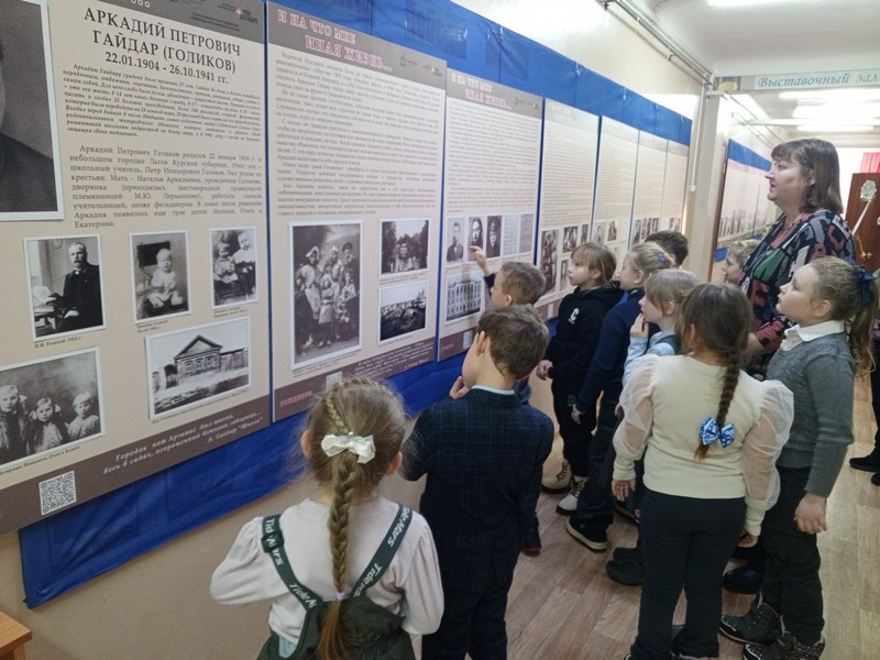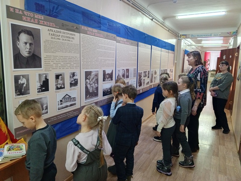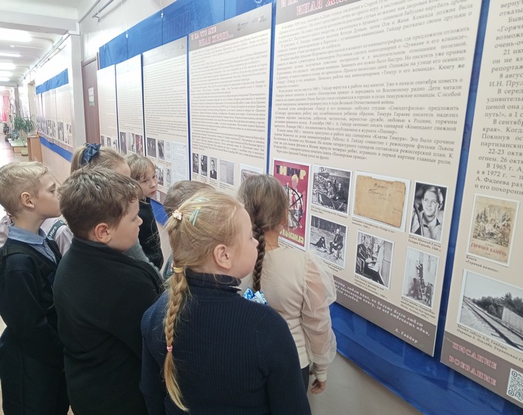 Открывали для себя его удивительно светлые, добрые, честные книги: «Чук и Гек», «Тимур и его команда», «Горячий камень», «Голубая чашка» и многие другие. С удивлением понимали, что книги и герои Гайдара актуальны и по сей день, ведь не теряют актуальности -верность, смелость, чувство долга, товарищество. Прозвучали отрывки из произведений Гайдара, были показаны фрагменты из документальных фильмов, экранизаций и мультфильмов.